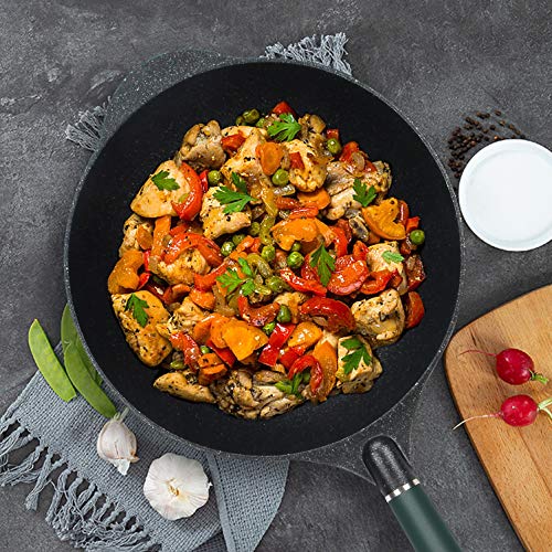- 【MEET YOUR DAILY USE NEEDS】 :This set includes a 11" frying pan and a 12.5" wok with lid. You can use this non stick frying pan to cook perfect stir-fries, vegetables, omelets, steaks, potatoes etc.In addition to stir-frying, with the chinese wok pan, you can cook healthy meals using various traditional cooking techniques like pan-frying, braising and deep-frying. They can meet the different needs of your daily cooking.